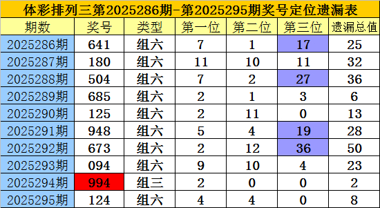 开奖回顾:排列三第2025295期奖号为:124,各位号码遗漏值分别为4、4、0,遗漏总值为8。