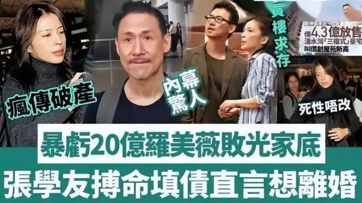 张学友被传因妻子罗美薇投资失败,败光20亿家产,被迫在花甲之年不断开演唱会还债。