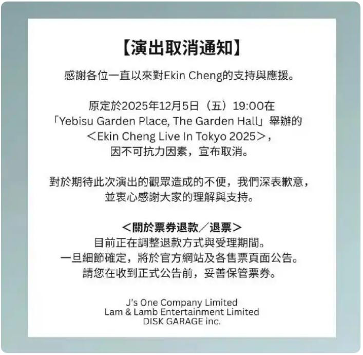 就在演唱会开始前9天,主办方一纸公告,将郑伊健粉丝的所有计划打乱。