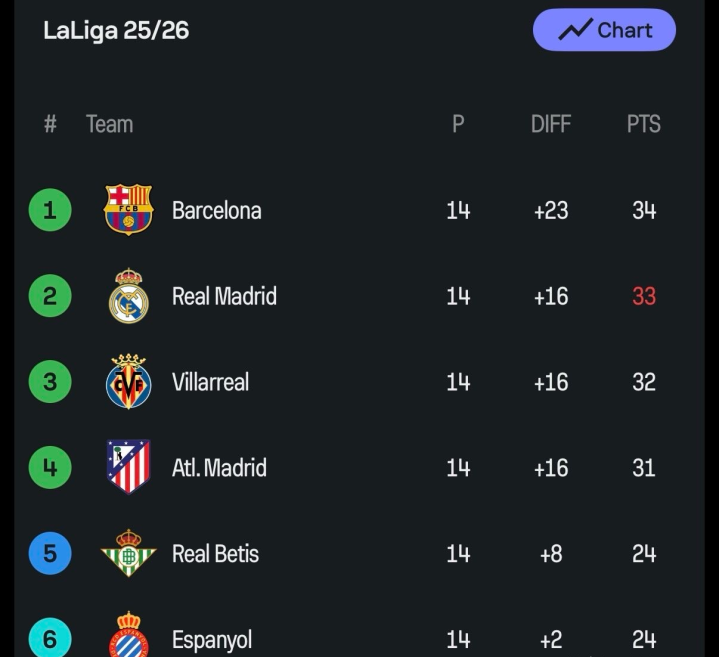 其实皇马之前的优势不小,但奈何3轮丢了6分的情形,也瞬间让前4名的分差都不过只有1个胜场